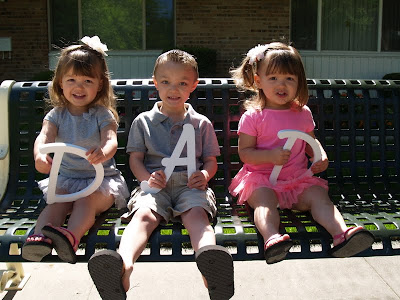 Oh how I LOVE having a pool in our complex. It is so nice to just be able to walk over whenever we get the swimming urge. Ethan LOVEs going. He goes so much. Mikes parents go almost every day and Ethan tags along most of the time. He is such little fish. All the kids use a padded swim suit and the girls use floaties. The first time we took the girls down they were unsure of the whole swimming idea but after we got those floaties on them the didn't want to get out!!